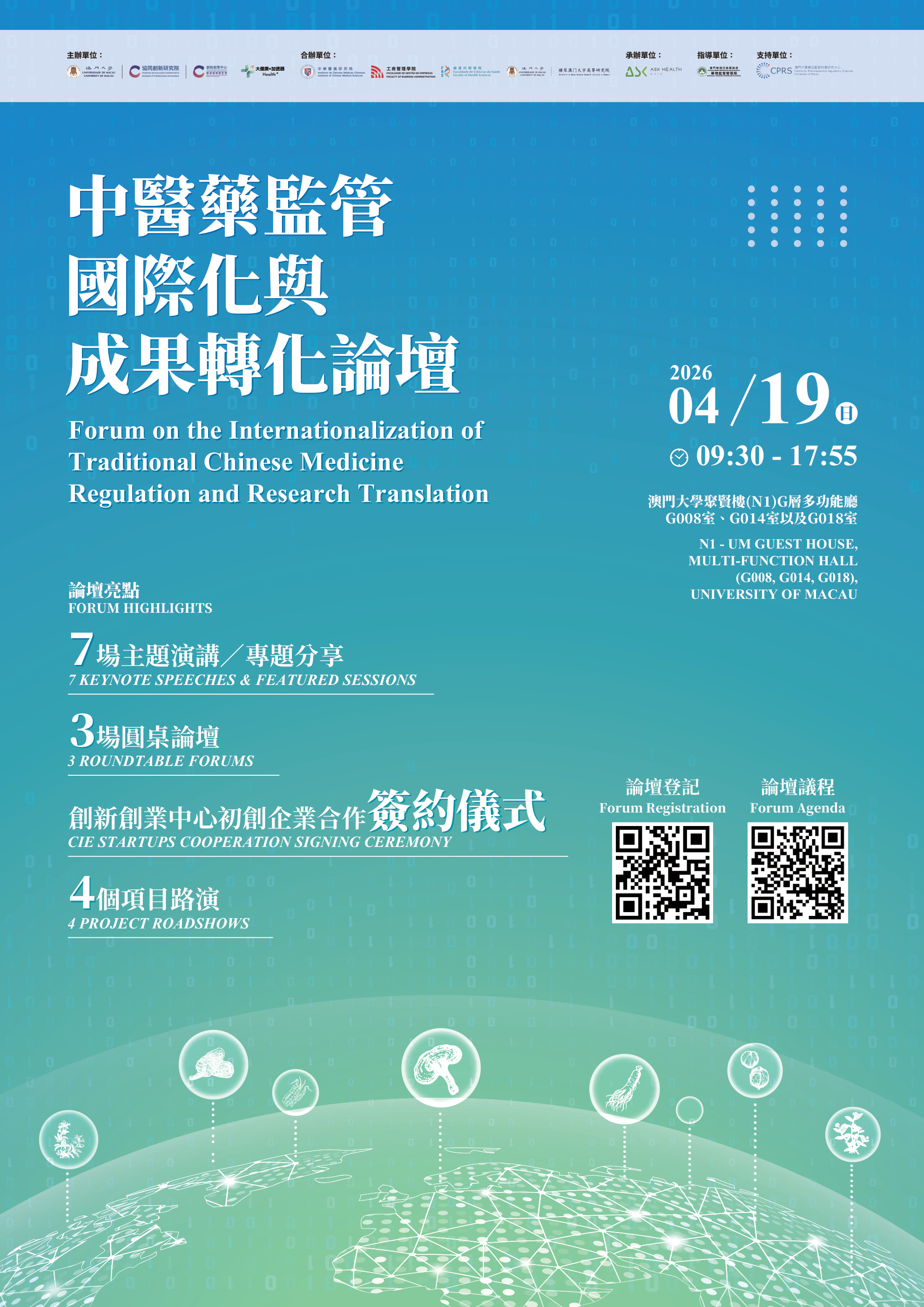 聚焦中醫藥監管協作、科技創新與高校成果轉化的國際論壇。 An international forum on TCM regulation, technology innovation, and university research translation.